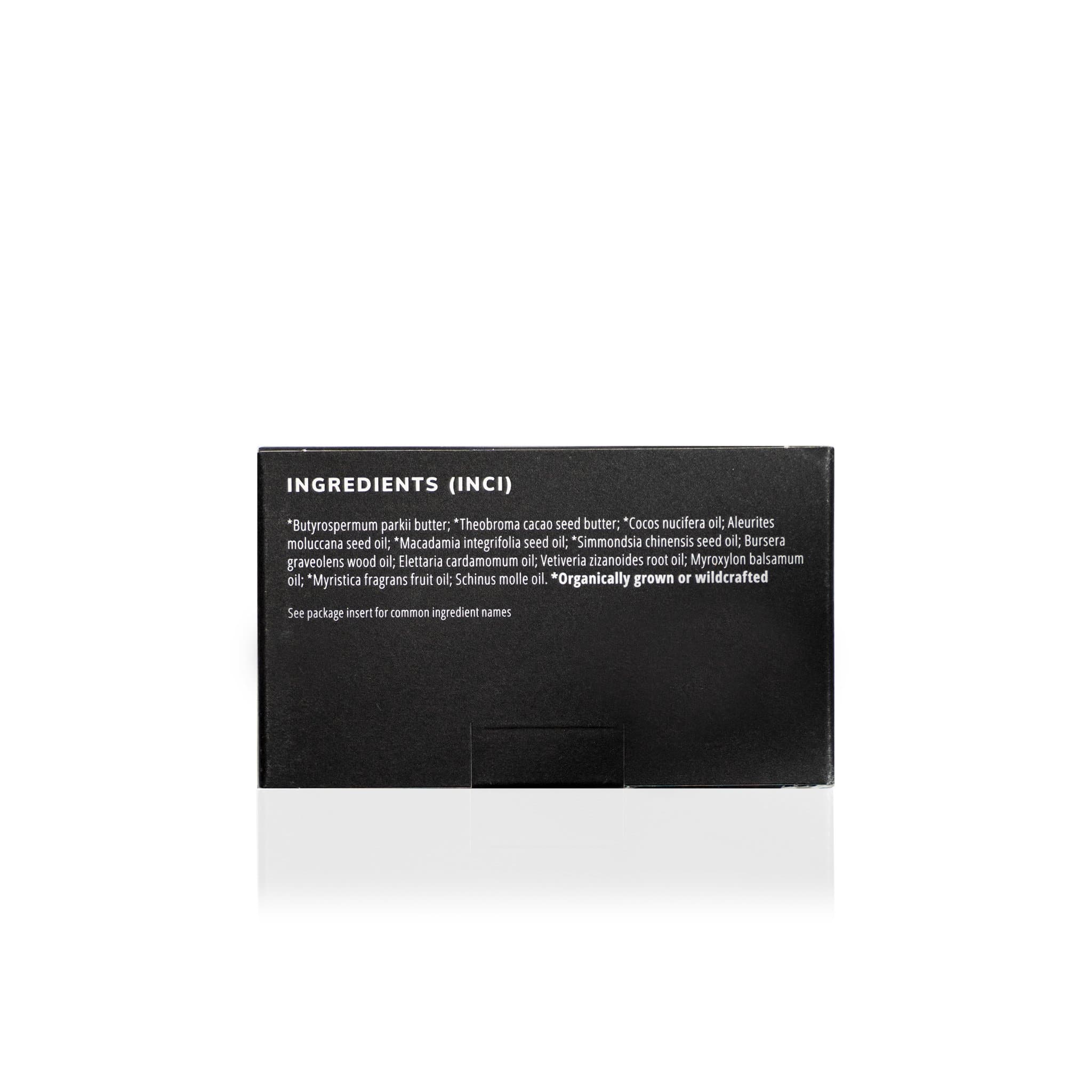Cocoa Butter – This fair-trade cocoa butter boasts a dazzling array of potent polyphenols, protective antioxidants, and essential fatty acids. Derived from raw cocoa beans, it is rich in nutrients that feed, nourish, and hydrate skin—plus, its aroma is just plain delectable.