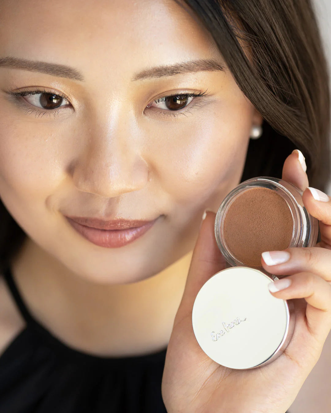 Boost skin radiance, effortlessly, with cacao bronzing pot. A skin-like natural formula that gives your complexion the most natural glow, without the shimmer. Featuring hydrating cacao and shea butters to nourish all skin types, for a smooth all-over face bronzer. The mousse-like texture is a lightweight cream, buildable coverage and easy to blend leaving a gorgeous tan affect, year-round, and without the sun damage! Use this Ere Perez natural bronzing cream as an everyday face bronzer, or as bronzing contour, buffing into skin to define your best features. Apply on-the-go with the sleek mirrored eco makeup packaging, without the plastic.