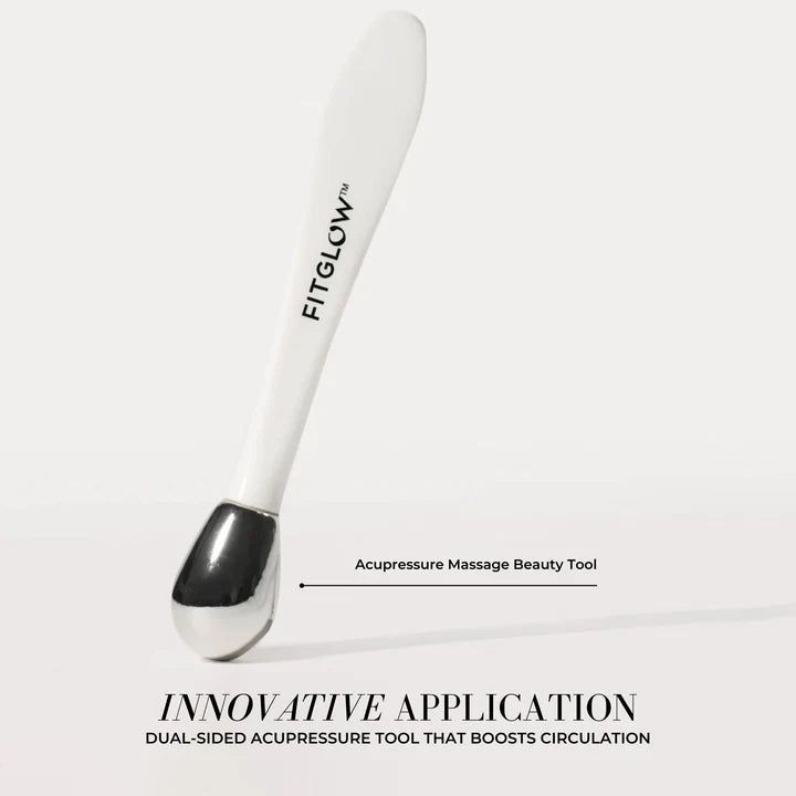 Acupressure Massage Beauty Tool – Scoop eye mask from jar using the flat end to keep your application experience fresh and contamination free. Use the circular end to distribute and massage cream around the eye area. This acupressure tool helps glide product and release tension around the eye area.