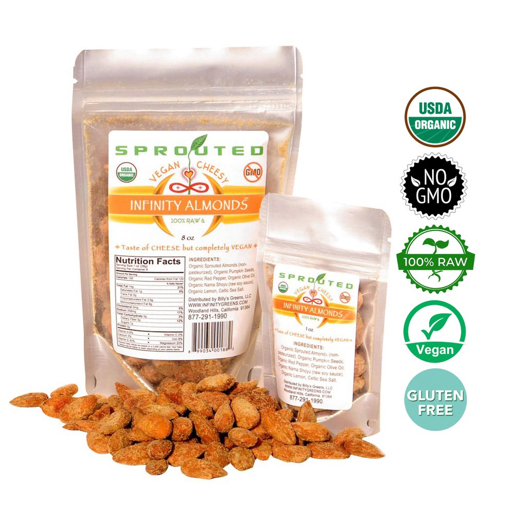 The Infinity Almonds are the world's only almonds that are certified organic, raw/unpasturized, and sprouted!