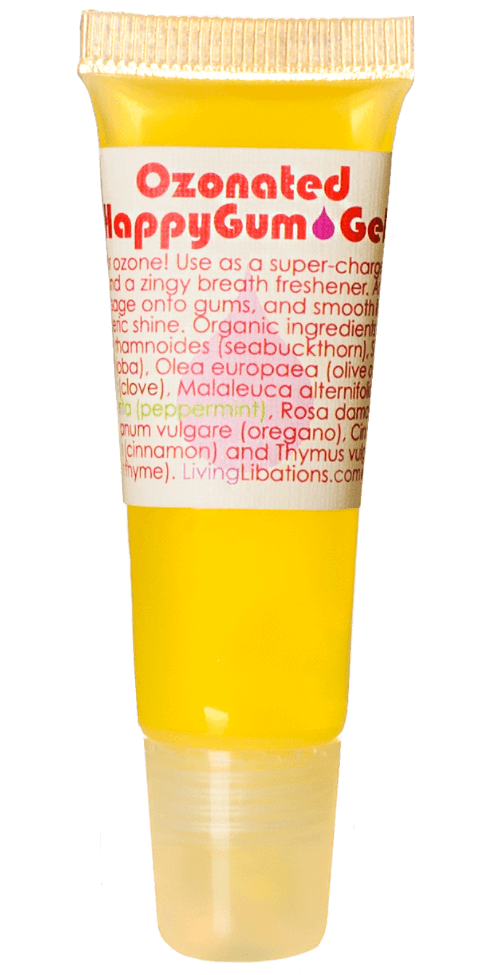 Living Libations Ozonated Happy Gum Gel is a super-charged, botanical tooth-gel used for restoring a healthy mouth, massaging your gums, and freshening breath. Add a drop to floss or toothbrush for an invigorating, supercharged oral care experience.