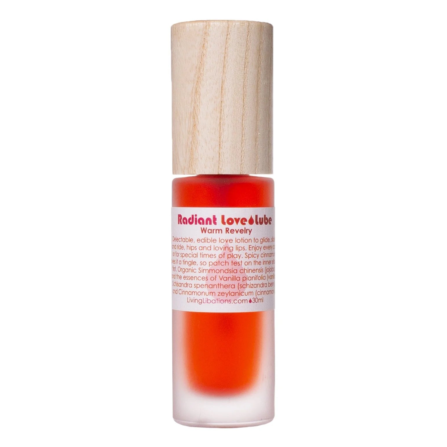Living Libations Radiant Love Lube is a delectable delight of warm revelry that enhances an amorous day or night. Radiant Love Lube is made to be played as a lubricant to glide, slide, and ride upon hips and lips. This scintillating synergy of organic ingredients coalesce for a spreadable, edible love lotion that gets things in motion.