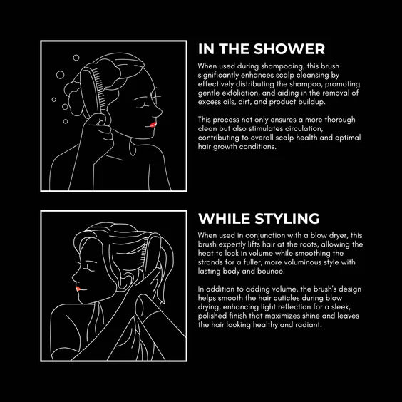 For the scalp, it provides a stimulating massage to enhance blood flow and hair vitality from the roots.