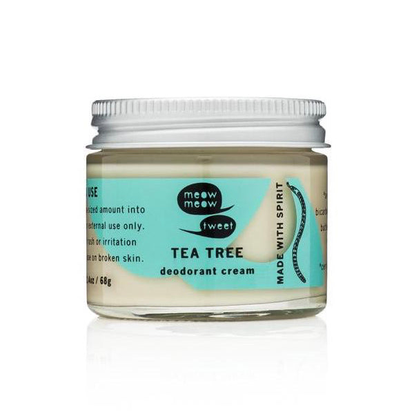 Meow Meow Tweet's completely natural underarm cream is safe, effective and will leave you smelling fresh all day. Baking soda, arrowroot and clay combine to help keep you dry and control odor. Organic plant oils and shea butter moisturize and soothe sensitive underarm skin, while aromatic essential oils combat bacteria responsible for underarm odor.