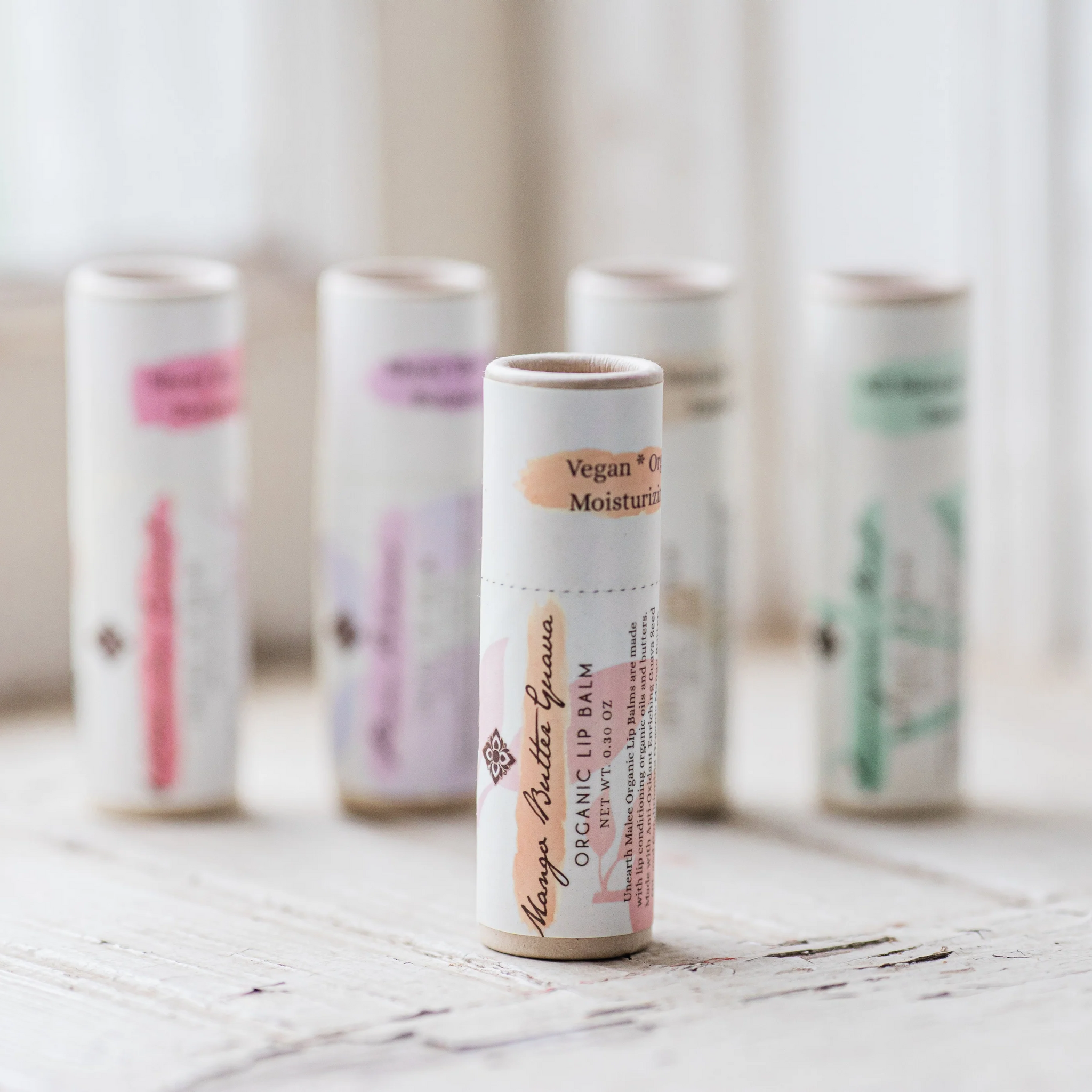 Introducing Mango Butter Guava Organic Lip Balm, the perfect vegan lip balm for all your soothing needs. Formulated with organic guava seed oil and mango butter, this balm is packed with powerful antioxidants to fight free radicals, along with an abundance of fatty acids and vitamins A, C, and E to moisturize and protect your delicate lips from the cold and wind. Keep your lips soft and protected while feeling good knowing it comes in an eco-friendly, plastic -free, paper tube. Free of additives, synthetic fragrances and artificial flavoring.