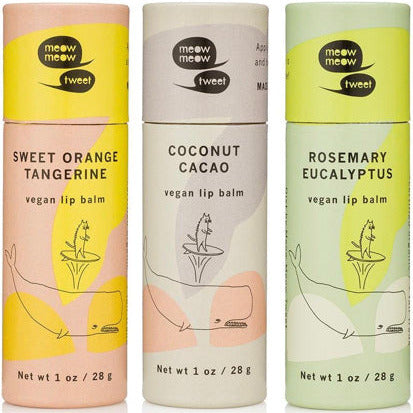 Keep those kissers soft and smiling with Meow Meow Tweet's Sweet Orange Tangerine vegan lip balm! The epitome of multipurpose, these balms can be used for lips, hands and any other bits of skin that need a little extra TLC. Housed in a jumbo paper tube, organic plant oils and butters prevent and repair dry skin.