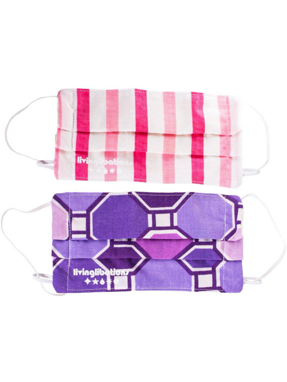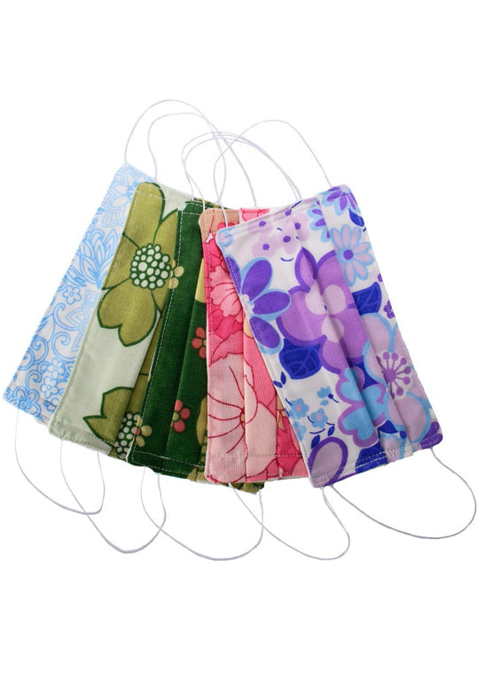 A cheery, vintage fabric exterior with pleated organic cotton jersey on the inside snuggly covers the nose and mouth to pleasantly protect and purify your respiration from airborne pollutants and trespassers, such as smoke, dust, pollen, and other airborne issues.