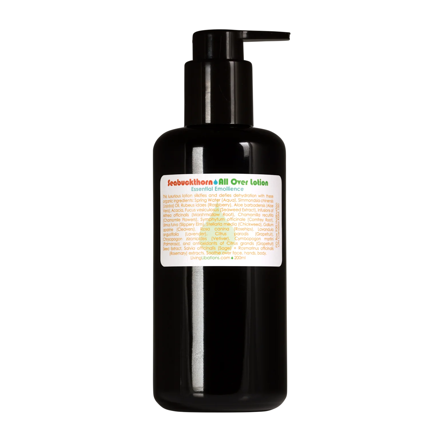 Living Libations beloved classic revived with fresh herbal infusions! Living Libations satiating Seabuckthorn All Over Lotion will saturate the thirst of your dermis as you infuse skin from head to toe with a lotion that posits a plant-loving-potion onto parched skin. Glide the body and face with the grace of botanical extracts, herbal infusions, and our most hydrating essential oil elixirs. Perfect as a fine facial moisturizer and all-over body lotion, this balancing blend benevolently supersaturates skin as the light and lovely lotion sinks in.