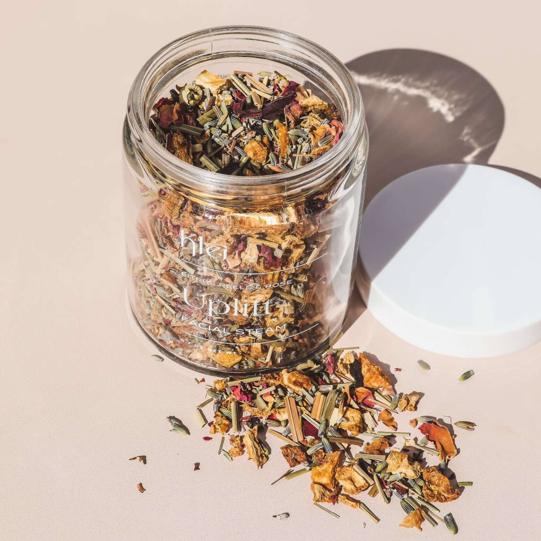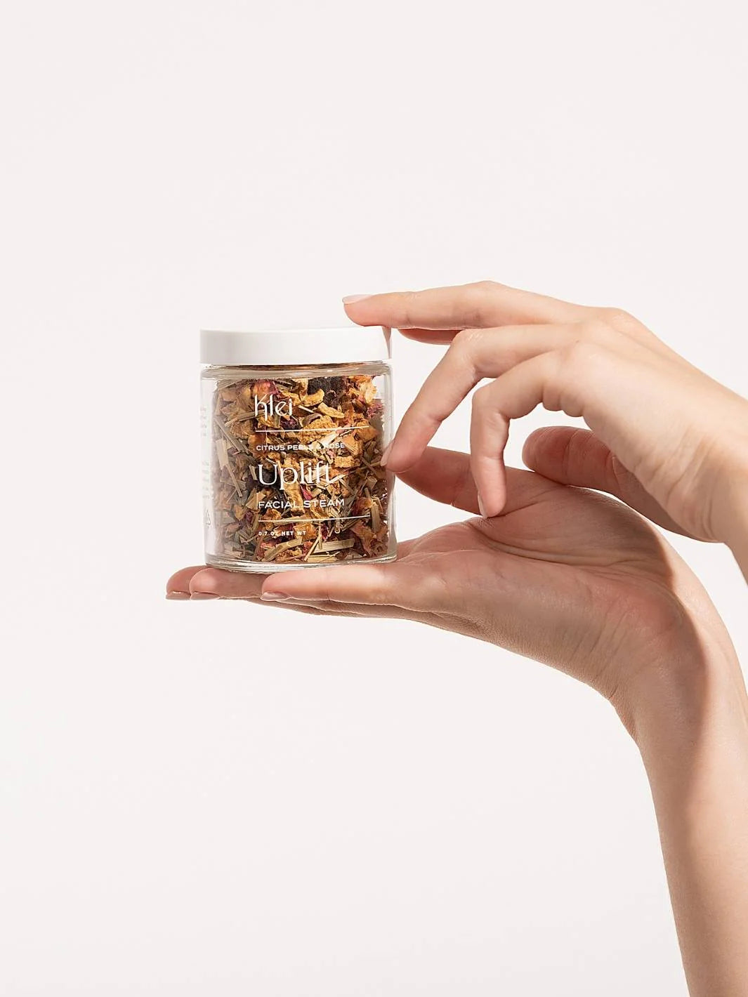UPLIFT AND UNWIND A mood-lifting blend of citrus peels and florals, this uplifting floral facial steam lifts your spirits while opening and cleansing the pores, prepping the face for further treatment. The Uplift Citrus Peels & Rose Floral Facial Steam can also be used as a bath soak!