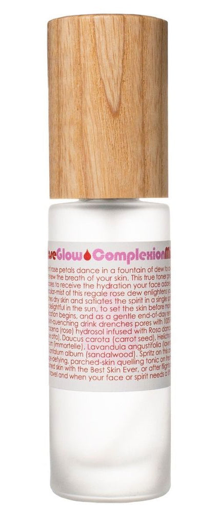 Living Libations Rose Glow Complexion Mist prepares skin to receive the proper hydration it desires. This beautiful rose hydrosol is blossoming with hundreds of rose petals that awaken and awakens the skin and spirit. Living Libations Rose Glow Complexion Mist drenches parched skin tones uneven complexions. Mist upon freshly cleansed skin and throughout the day to awaken and replenish skin hydration. Excellent for traveling on long flights!