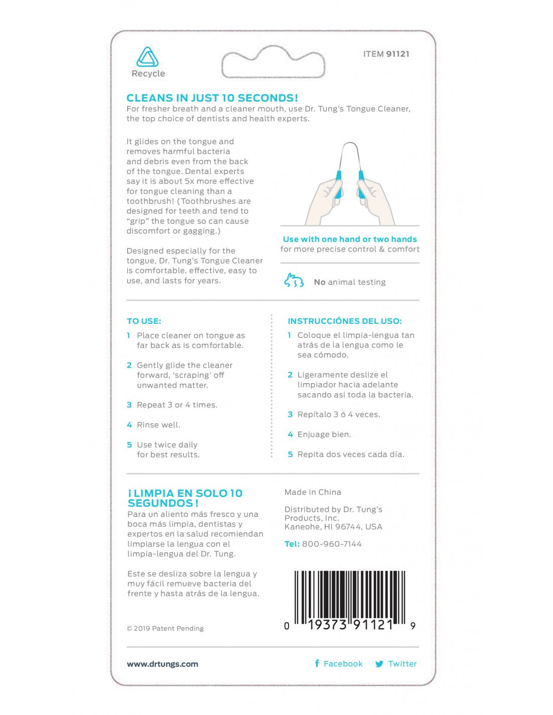 Dr. Tung's cleaner is the leading tongue cleaner in the health market and is sold in health stores and dental offices around the country.