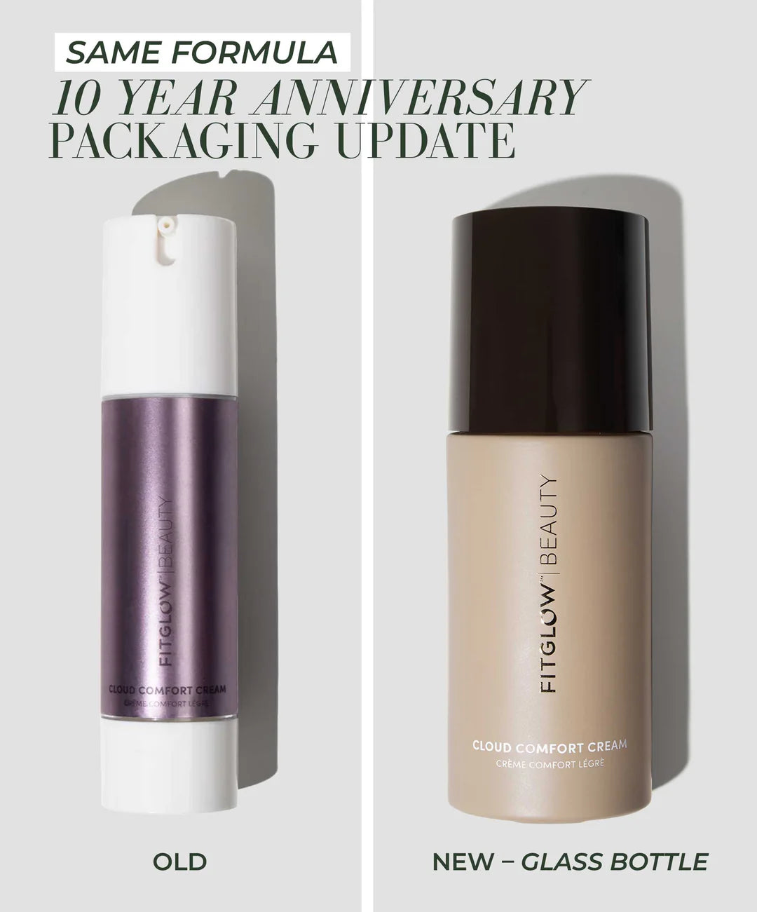 Experience the luxurious hydration of Cloud Comfort Cream, now in a stunning new glass bottle to commemorate Fitglow Beauty's 10th anniversary. This award-winning vegan moisturizer is specifically formulated for sensitive skin, offering instant relief and long-lasting comfort.