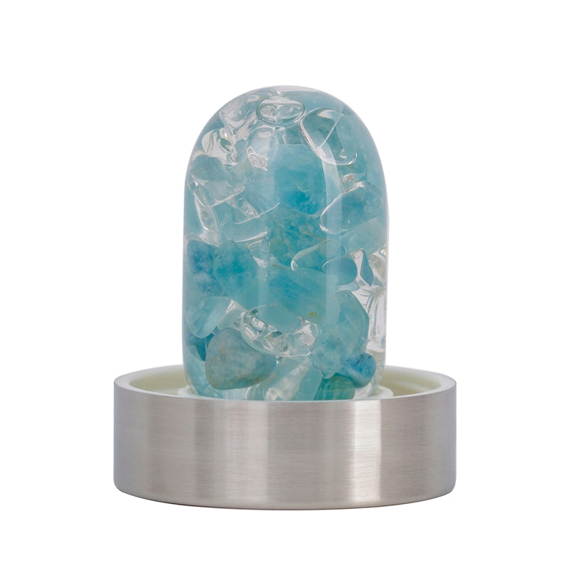 Aquamarine -Clear Quartz. Aquamarine means "water of the sea" and this gently blue stone is said to be calming, soothing, and cleansing, just like a refreshing swim in the ocean! Not to forget its great sideeffect: Inner purity is also visible on the outside. For use with ViA water bottle.