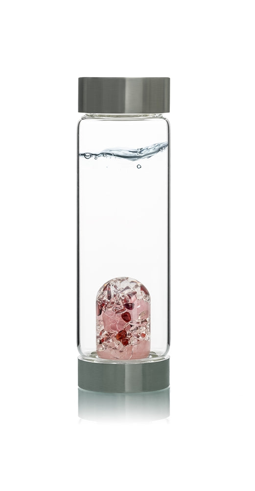 Rose Quartz - Garnet - Clear Quartz). Rose quartz is a talisman for relationships and is used to release emotional wounds and traumas and to bring peace and calm. Fiery Garnet adds a component of sensuality and passion to this blend. For use with ViA water bottle.