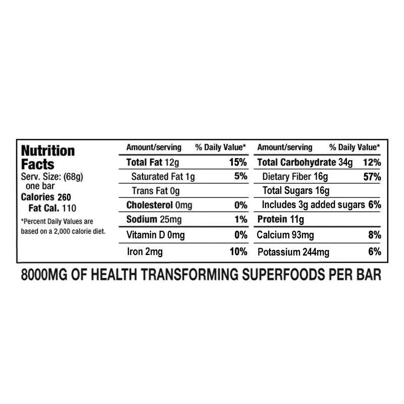 Fully nourish with crucial vitamins, minerals & enzymes, 2000mg Omega 3 healthy fats per serving, 4000mg Infinity Greens in every bar. No! - sugar, soy, gluten, dairy free 100% organic, vegan, raw, wildcrafted Antioxidant and Enzyme Rich The best energy bars on earth!