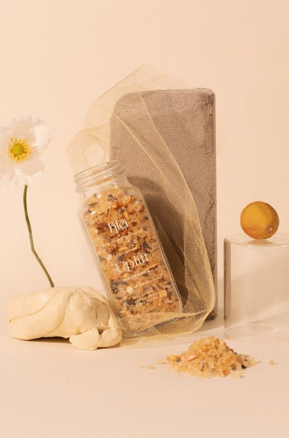 UPLIFT & RELAX. Brighten your day with this mood-lifting botanical bath soak. KLEI Beauty's UPLIFT Citrus & Lavender Bath Soak is a mineral-rich base of Dead Sea Salt is blended with Coconut Milk to soften, and French Yellow Clay to exfoliate and renew skin. The citrus and lavender scent helps to focus your mind and uplift your spirits.