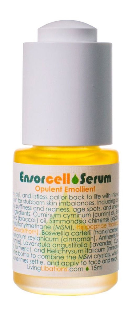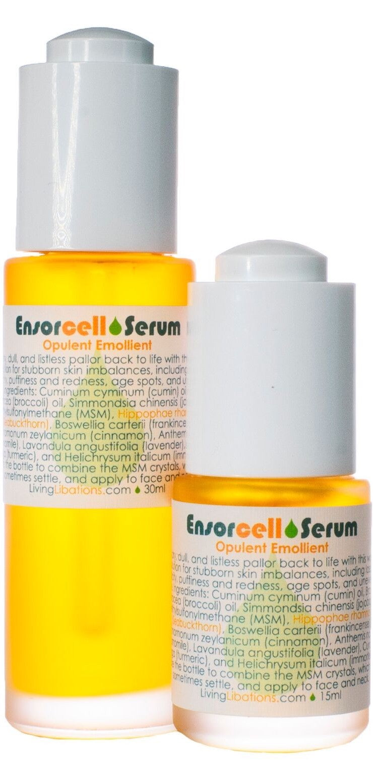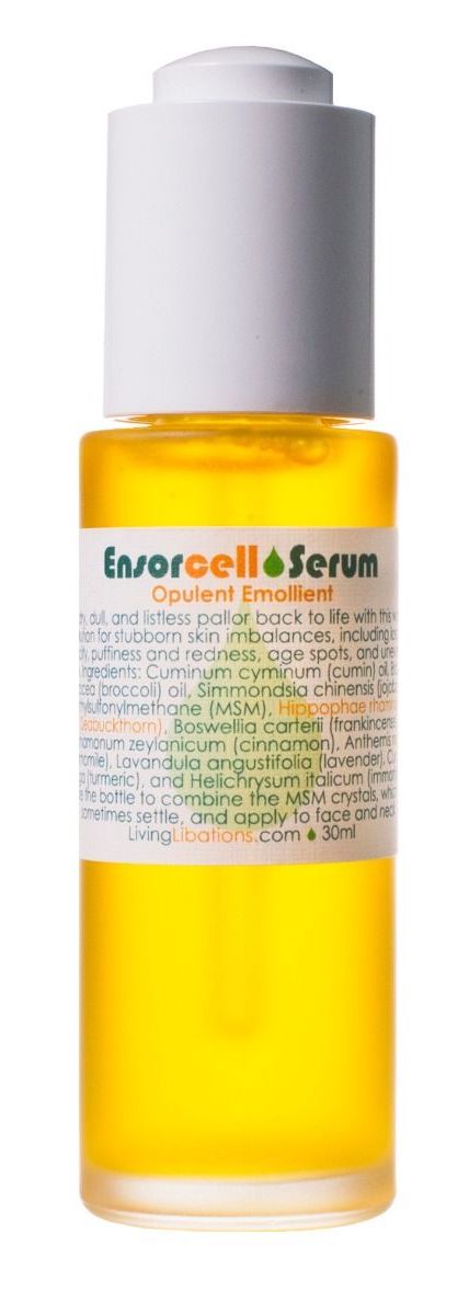This balancing serum stimulates to bring dull, lackluster skin back to a state of glowing splendor. Ensorcell Serum deeply penetrates the skin, restoring with it's supercritical extracts, MSM-infused organic essential oils and cold-pressed fatty acids.