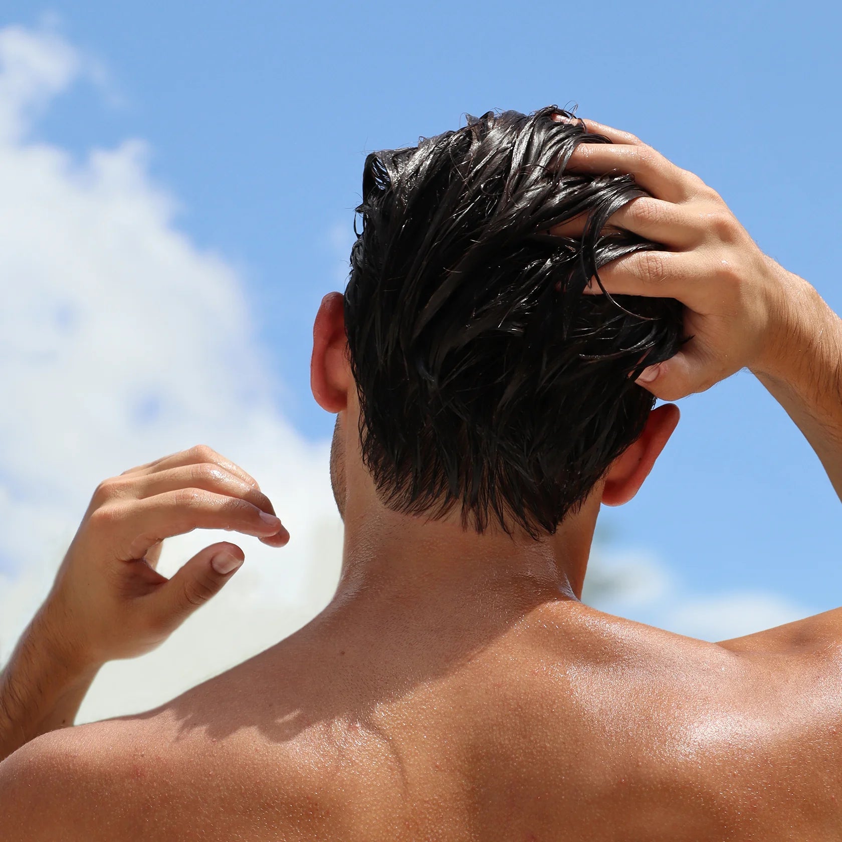 Hair Shield is a leave-in conditioner that protects all hair types from the damaging effects of sun, ocean and pool. A nourishing base of aloe and coconut hydrate your scalp and hair while avocado and biotin fortify and protect each strand. Algae, orange and rosemary infuse vitamins, minerals and antioxidants that act as protectors and smell like a dreamy beach day.